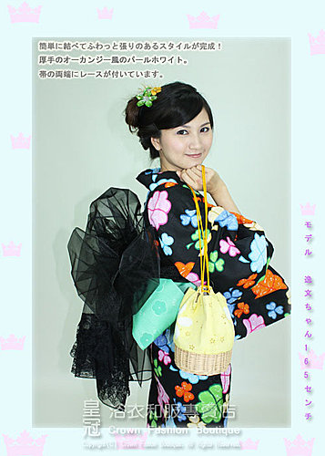 在機場、觀光飯店或禮品土產店常會看到這種像絲材質、帶點亮面像緞面、觸感也像蠶絲,實際上是高級纖維,這幾款可以當作洗澡、泡湯後披上的簡易日式睡袍也可以當作睡覺時的睡衣。衣服袖口會縫上腰帶,腰帶寬約4.5公分,要使用時才拆下,綁簡單的蝴蝶結即可!這幾年常有客人在日本買浴衣前來店裏,另外預約付費浴衣教學,