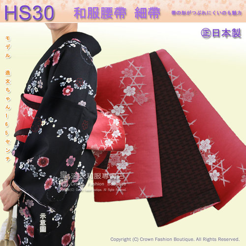 和服配件~【番號HS39】細帶小袋帶-紫色漸層花卉雙面可用-日本舞踊-小紋和服㊣日本製