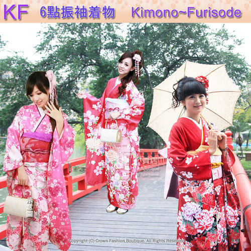 六點振袖套組包括振袖着物一件、振袖長襦絆一件、伊達衿一條、袋帶一條、帶締一條、帶揚一條(帶揚、帶締由賣場搭配隨機出貨 品質如照片)。六點套組物超所值、可水洗,穿着振袖和服 不再是遙不可及的夢想,買新商品比租划算!數量不多,如果現貨賣完,要請預購 約7~10工作天、請跟皇冠洽詢!