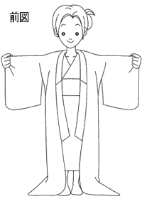 (1)用兩手將浴衣的袖口向兩側展平袖子。